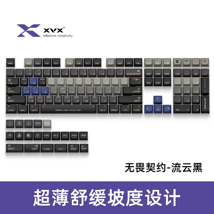 【XVX】無畏契約 流雲黑 超薄舒緩坡度款 無開窗 PBT主題鍵帽 125鍵大全套