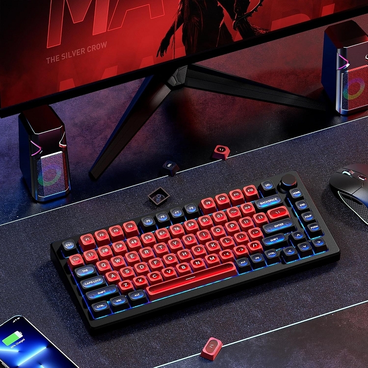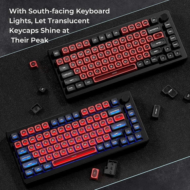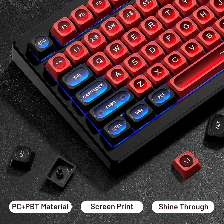 這些鍵帽由 PBT bouble bhot 製成. 與abs材質相比,pbt耐磨,耐熱,耐髒,不掉色,可用水清洗,為您提供更好舒適的體驗。
