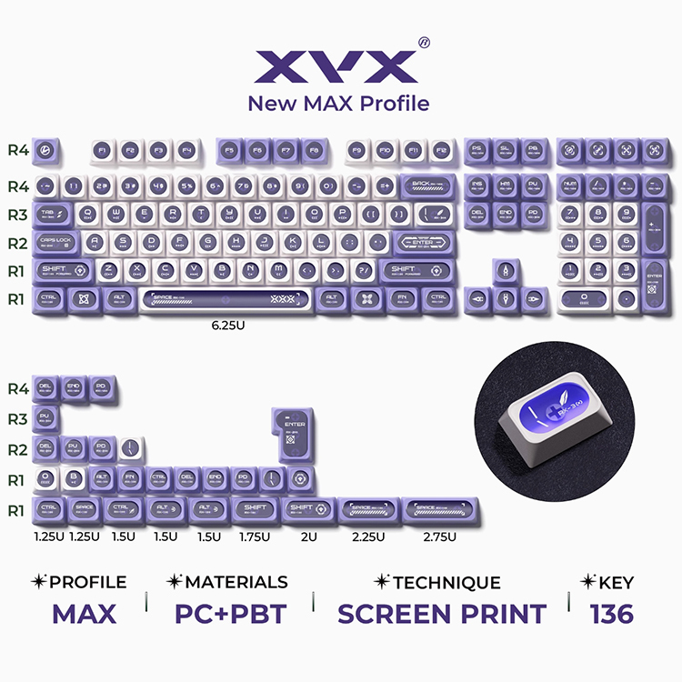 【XVX】MAX 高度 貓眼石 雙色正印 紫白透明 131鍵 中間圓形透光 PBT+PC 主題鍵帽 大全套