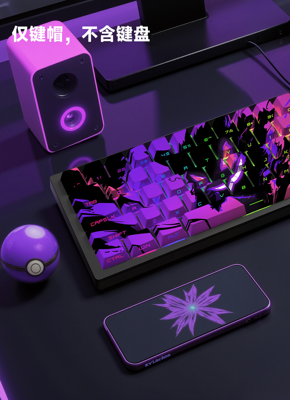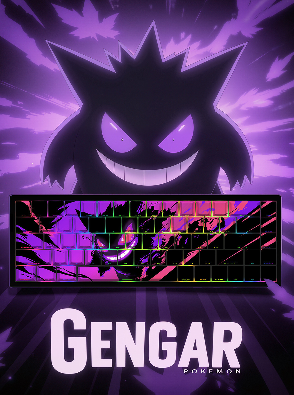 【二次元風格】Gengar 耿鬼 cherry高度 五面熱昇華 側刻透光129鍵 PBT鍵帽