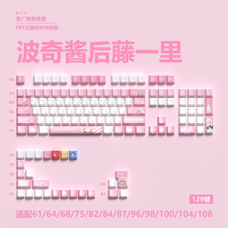 【二次元風格】孤独摇滚!波奇酱 后藤一里 cherry高度 五面熱昇華 側刻透光 129鍵 PBT鍵帽