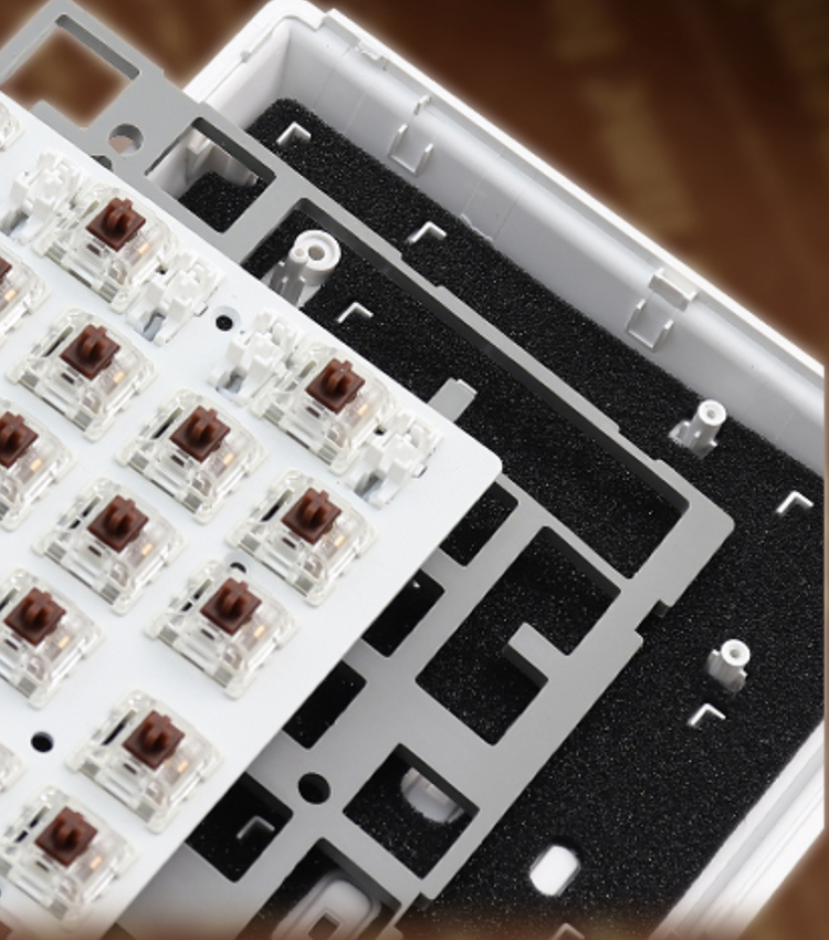 • 底蓋棉墊與矽膠夾心墊減少雜音,增強打感