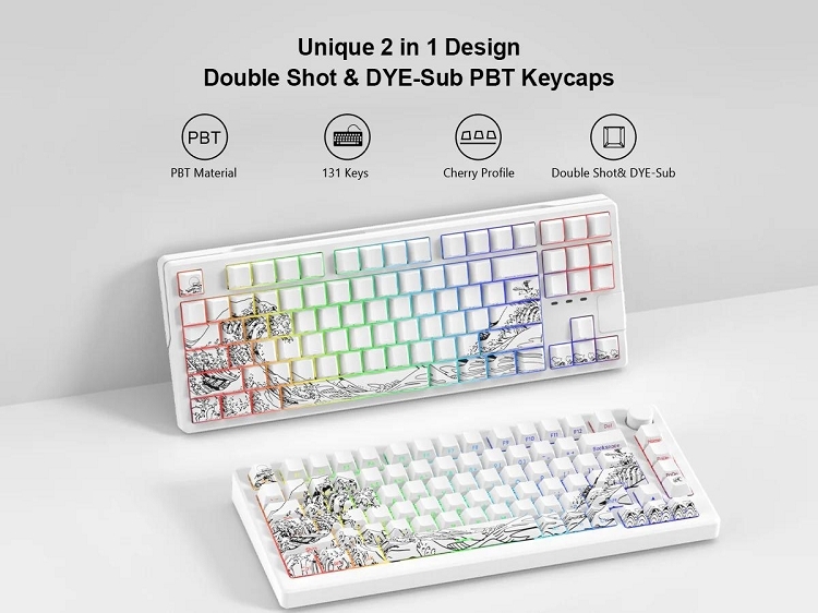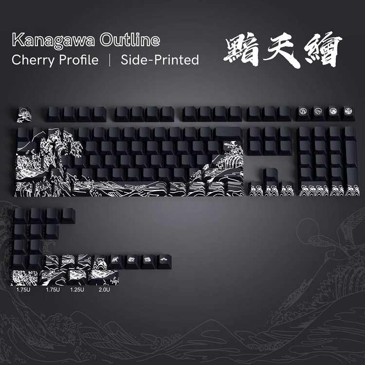 【主題鍵帽】Kanagawa 神奈川浮世繪 Cherry 高度 130鍵 5面 側透光 PBT 鍵帽 黯天繪