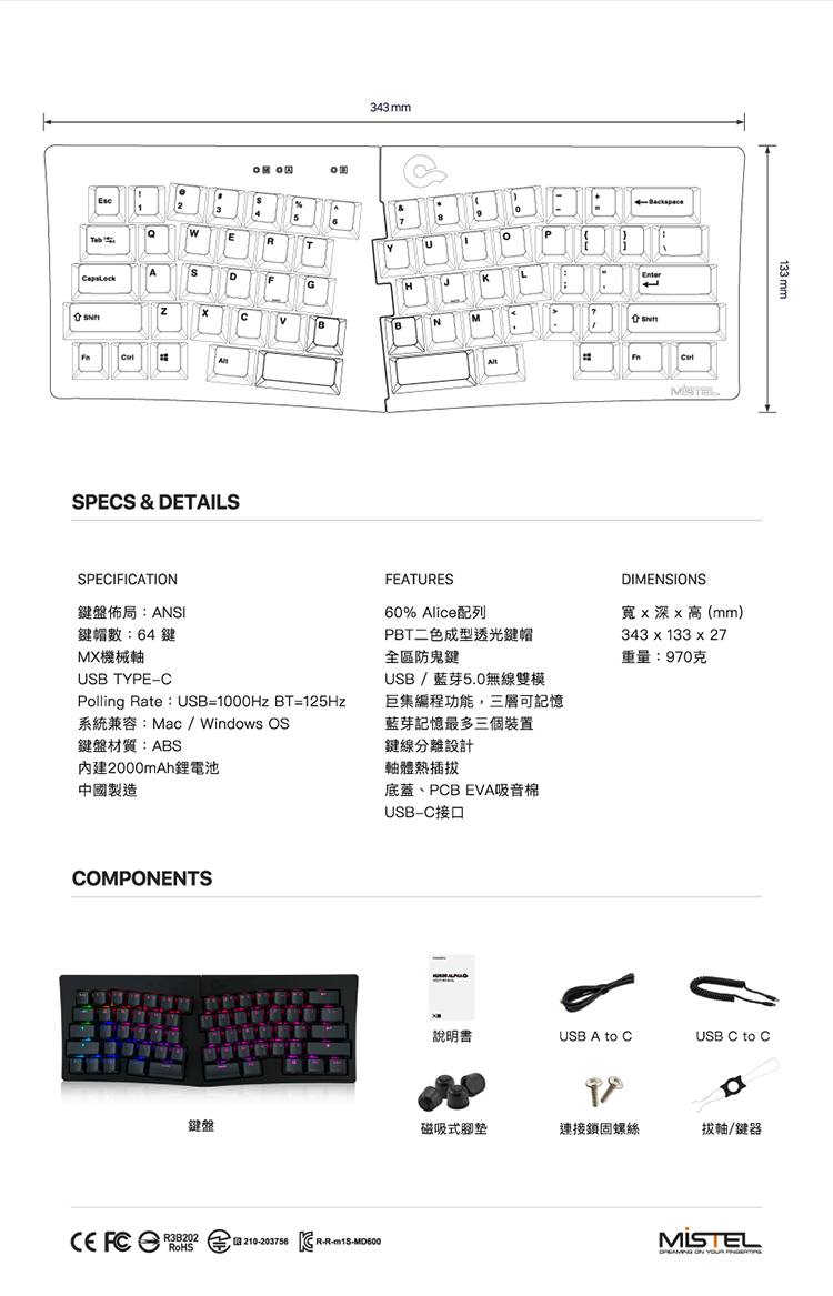 ▋ 本商品內容僅有鍵盤及內附配件,手托為額外加購商品。