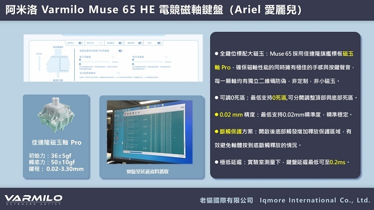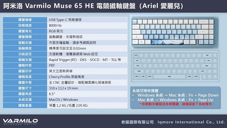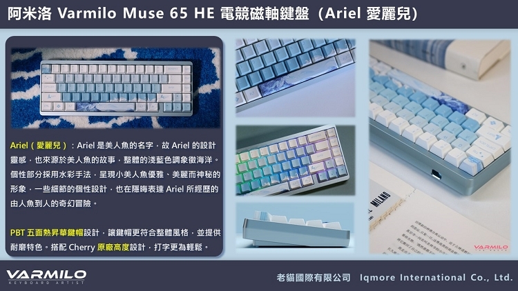 【Varmilo 阿米洛】 Muse65 HE 電競磁軸鍵盤 8K 英文 Muse 65 Ariel 愛麗兒