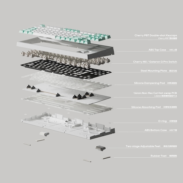 ▋ 內附特定鍵位個性顏色鍵帽可自行更換,組合雙色或三色混搭風格。