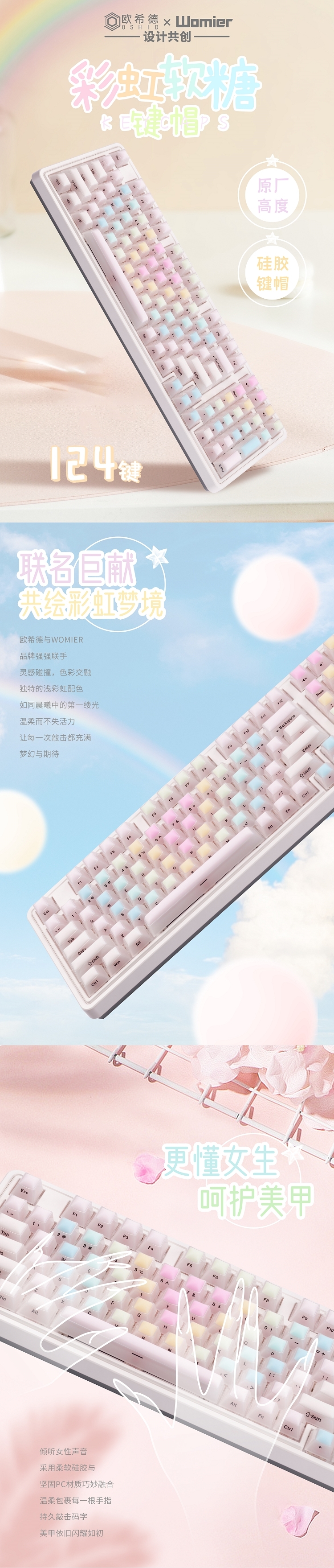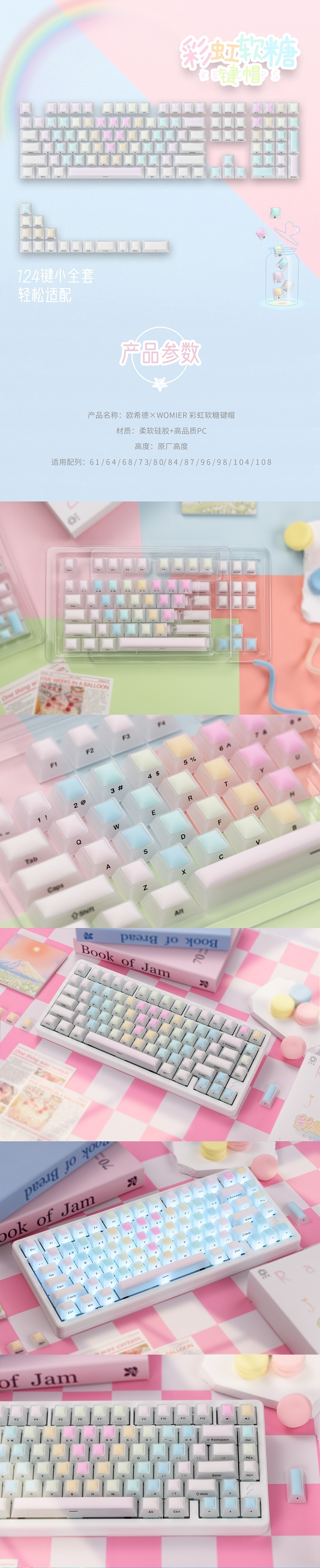 【歐希德 Oshid x Womier】主題鍵帽 彩虹軟糖鍵帽 124鍵全套 半透明馬卡龍 矽膠鍵帽