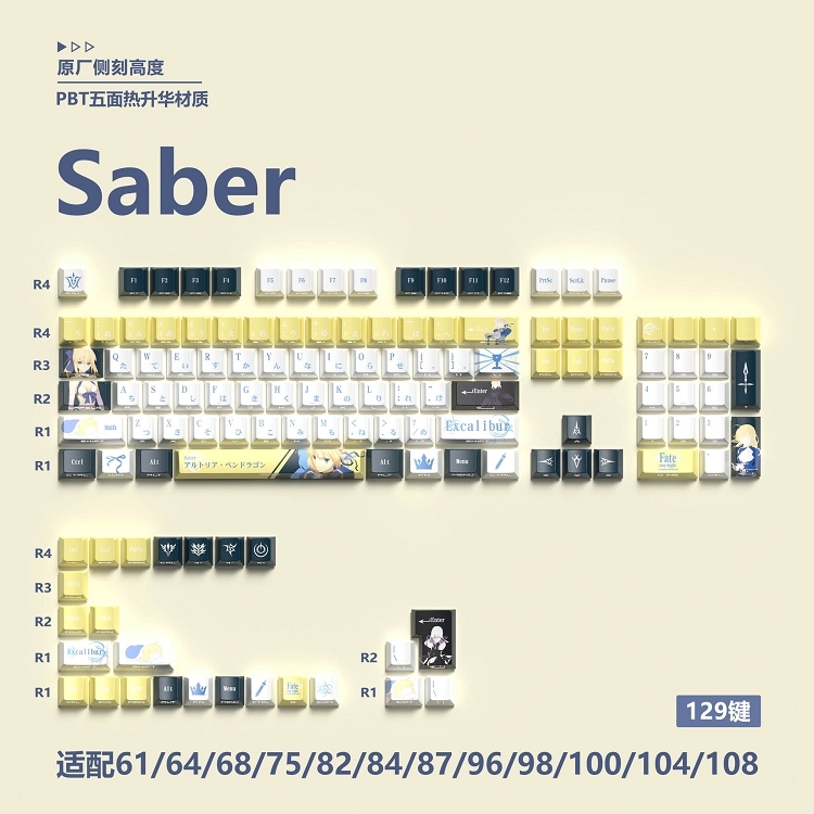 【二次元風格】Saber cherry高度 五面熱昇華 側刻透光 129鍵 PBT鍵帽