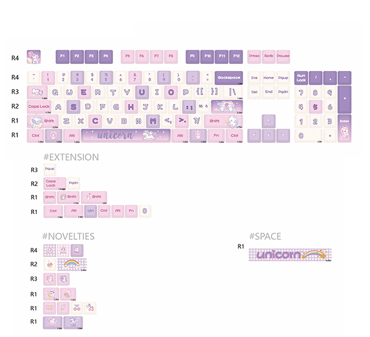 【主題鍵帽】獨角獸 XDA高度 五面熱昇華鍵帽 132大全套 支援 60% 80% 100% 鍵盤