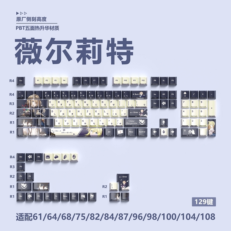【二次元風格】紫羅蘭永恆花園 薇爾莉特 伊芙加登 cherry高度 五面熱昇華 側刻透光 129鍵 PBT鍵帽