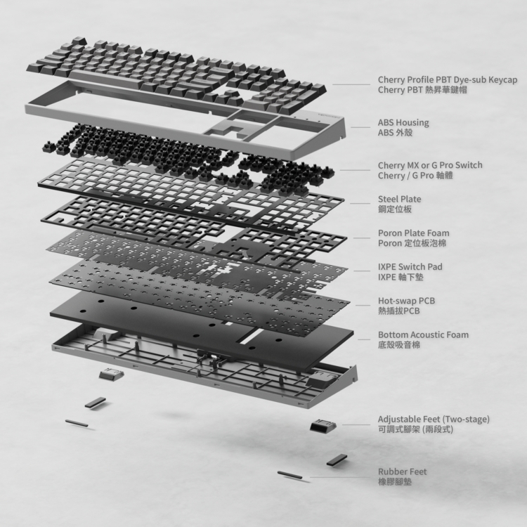 ▋ 內附特定鍵位個性顏色鍵帽可自行更換,組合雙色或三色混搭風格。
