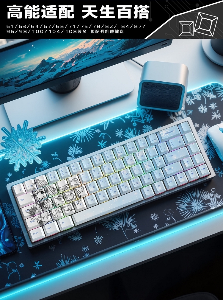 【二次元風格】雪乃日文 cherry高度 五面熱昇華 135鍵 PBT鍵帽
